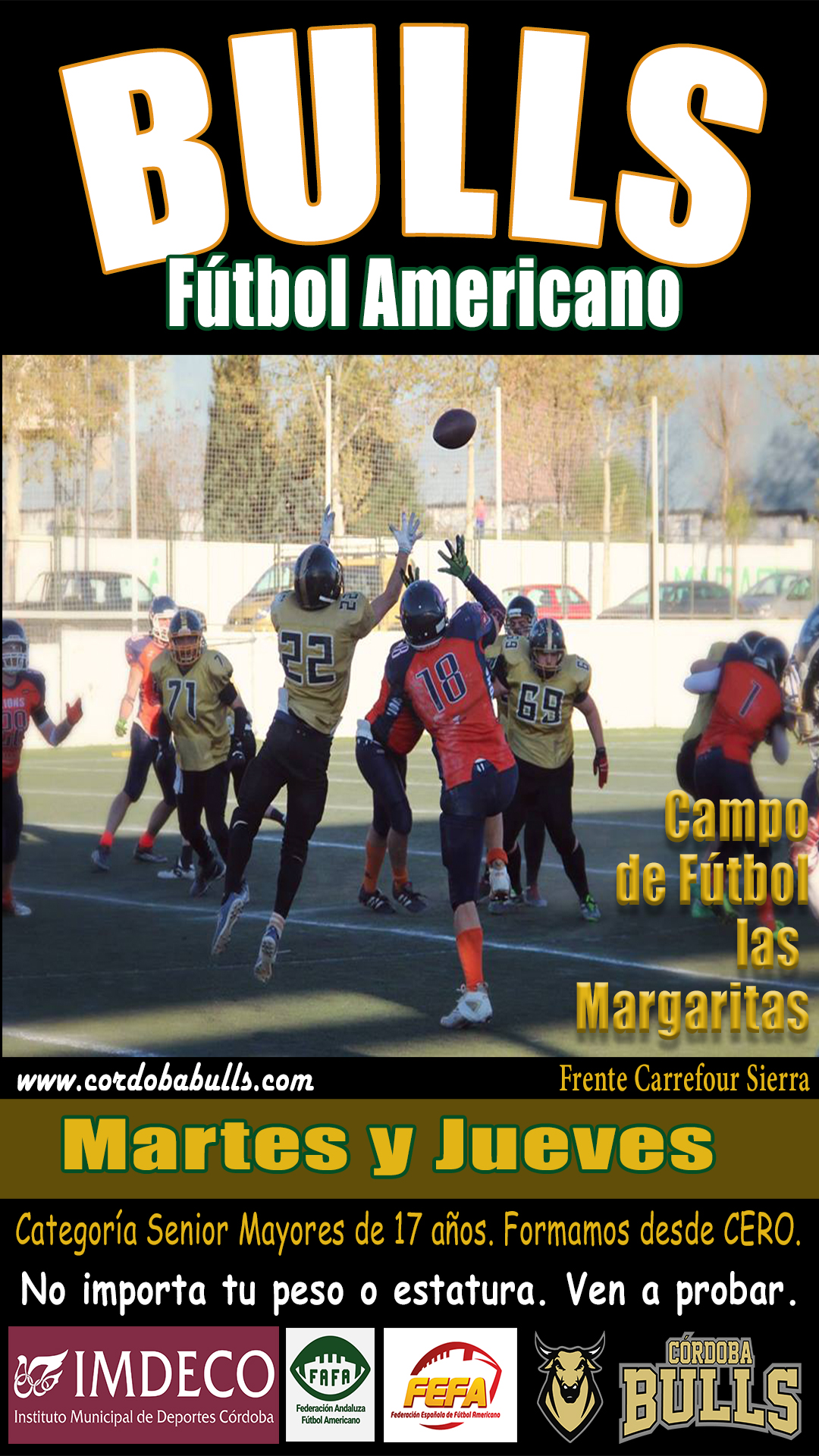 El equipo de flag football Córdoba Bulls debutó en la liga con una jornada de contrastes, enfrentándose a dos equipos malagueños en un día que puso a prueba tanto su resistencia como su capacidad de reacción